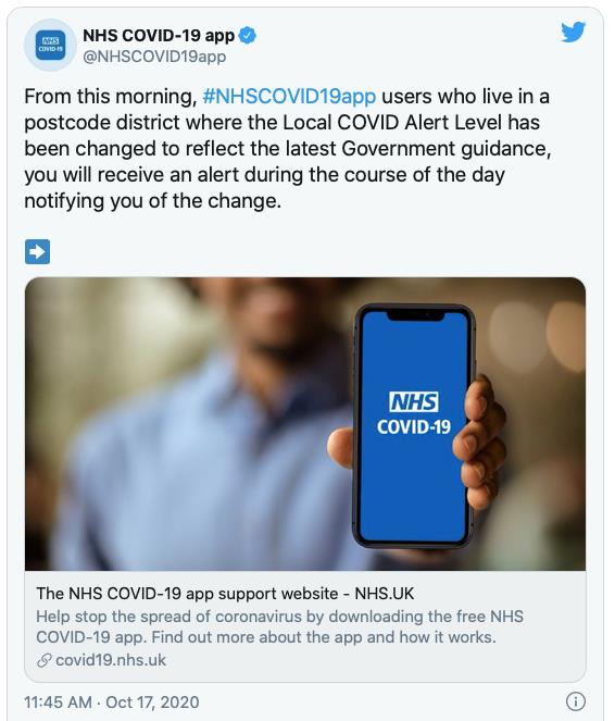This is slightly misleading as it has happened to reflect the latest Government guidance rather than local levels of infection as can be seen in this recent post on Twitter by the NHS.